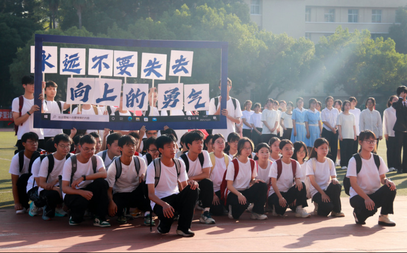 在舞蹈的最后,同学们齐心协力举起字牌,上面写着:“永远不要失去向上的勇气。”这句口号不仅是对他们自己的一种鼓励,也是对在场每一个人的激励。他们用坚定的眼神和响亮的声音喊出:“向下扎根,向上生花。青春无畏谱新章。”这不仅表达了他们对未来的憧憬和决心,也传递出一种积极向上、勇于探索的精神。