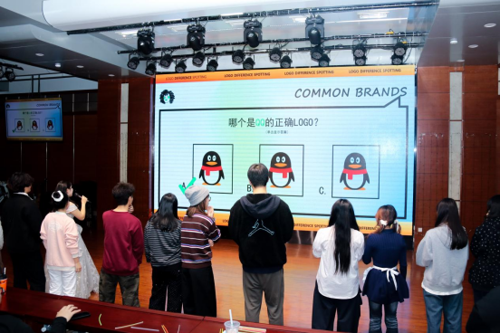 第二场中场游戏“LOGO闪电战”中,大屏展示各大品牌图片,主持人提问“背景板上正确的LOGO是哪个”,经过一轮激烈抢答,一、二、三等奖相继产生,并在大屏上抽取了2位二等奖获得者。
