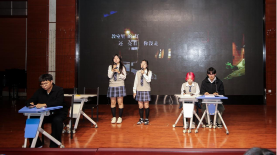 紧接着,自律部的歌曲“查你的课”引领观众回顾青春岁月,文体部的小品“分工明确”则让观众忍俊不禁。
