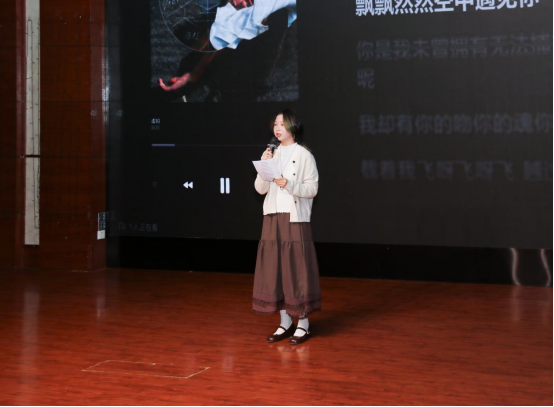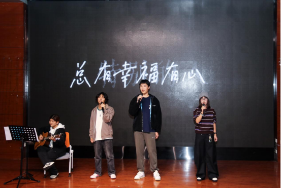 谷子视觉数据实验室呈现的“特别的人”表演,凭借独特的呈现形式再度点燃观众热情,掌声与欢呼声此起彼伏。随后,该实验室与融媒体中心的叶雨珊、林佳雯同学携手带来弹唱《至少还有你》,优美歌声与悠扬的乐器演奏相得益彰,为在场师生献上了一场治愈的听觉盛宴。