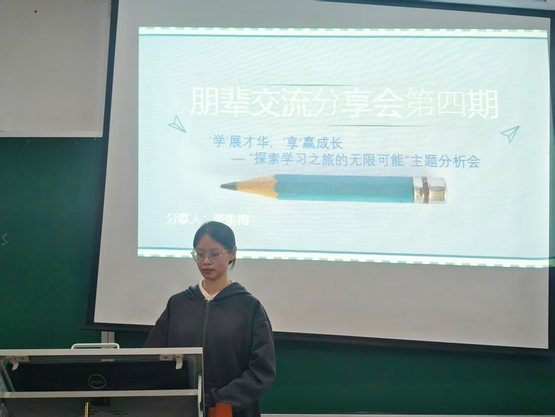 为深化学生对学习价值的认知,提升学习动力与能力,3月23日晚19:00,由数据科学与统计系主办的第四期朋辈经验交流会在子兴扇A顺利举行。本次活动以“‘学’展才华,‘享’赢成长——探索学习之旅的无限可能”为主题,邀请2022级信息与计算科学专业张贵梅同学担任主讲嘉宾,吸引了众多同学到场参与。