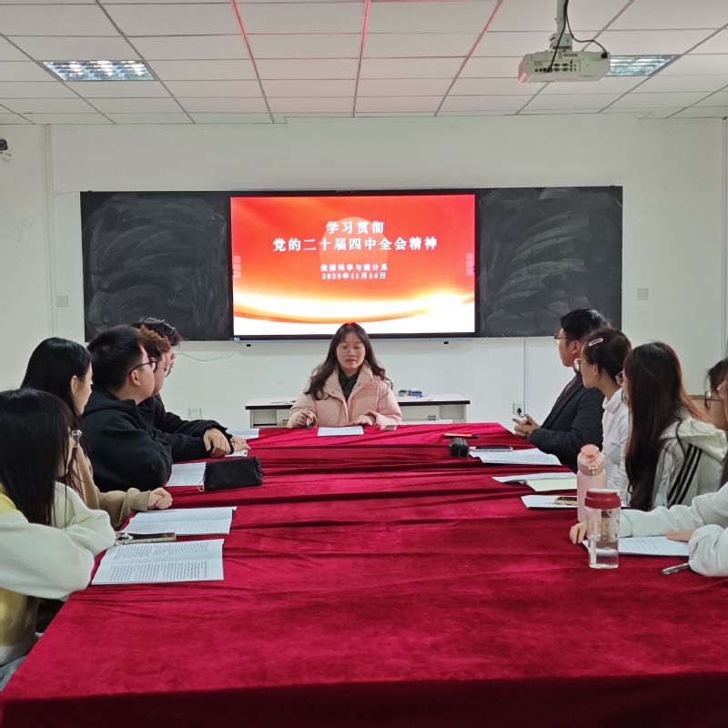 为深入学习贯彻党的二十届四中全会精神,扎实推进党员教育走深走实,切实把思想和行动统一到党中央决策部署上来,2025年11月14日,数据科学与统计系组织召开专题学习会,系内党员师生代表参加本次会议,共同研读全会公报核心要义,交流学习心得与实践路径。
